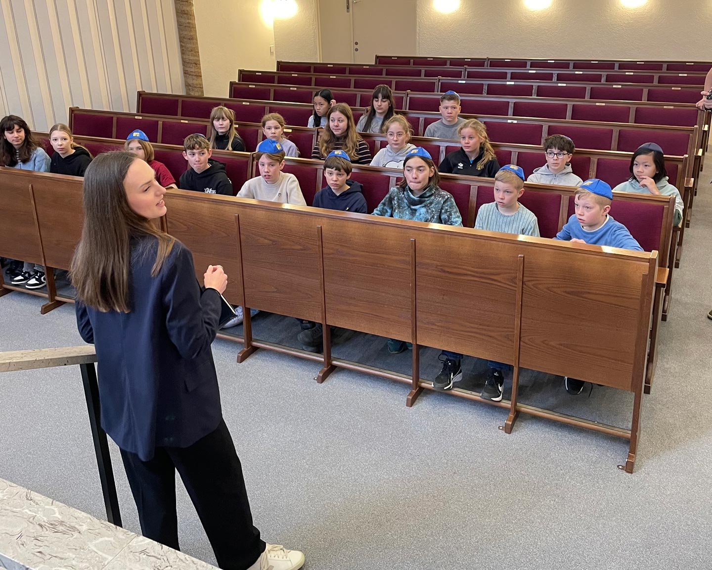 Mit großer Neugier stellten sie viele Fragen: Wie sieht jüdisches Leben heute aus? Welche Bedeutung haben die Gegenstände im Gebetsraum? Welche Traditionen werden bis heute gepflegt? Welche Regeln gibt es in der religiösen Lebensführung?Rebecca Vaneeva führte die Gruppe durch die Synagoge, beantwortete geduldig alle Fragen und erzählte anschaulich von jüdischen Festen, ihrem persönlichen Alltag in der Gemeinde und vom Leben jüdischer Familien in Hamburg.