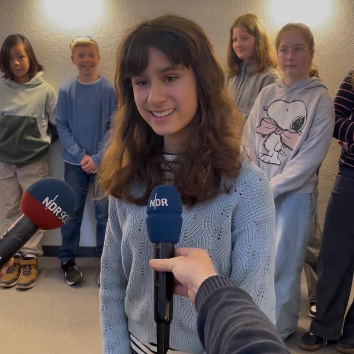 Schon beim Betreten war die Aufregung groß. Zahlreiche Medien waren vor Ort, Kameras und Mikrofone begleiteten den Besuch. Für die Schülerinnen und Schüler war dies ein ganz besonderes Erlebnis.